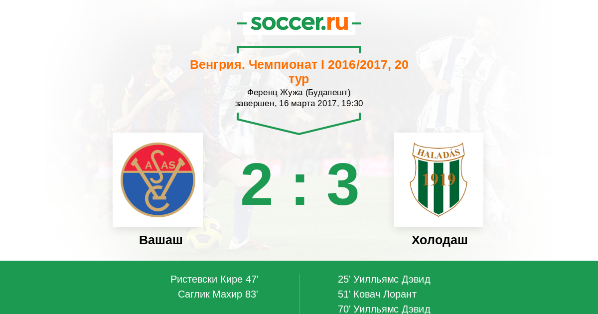 Вашаш - Холодаш: обзор матча 16 марта 2017
