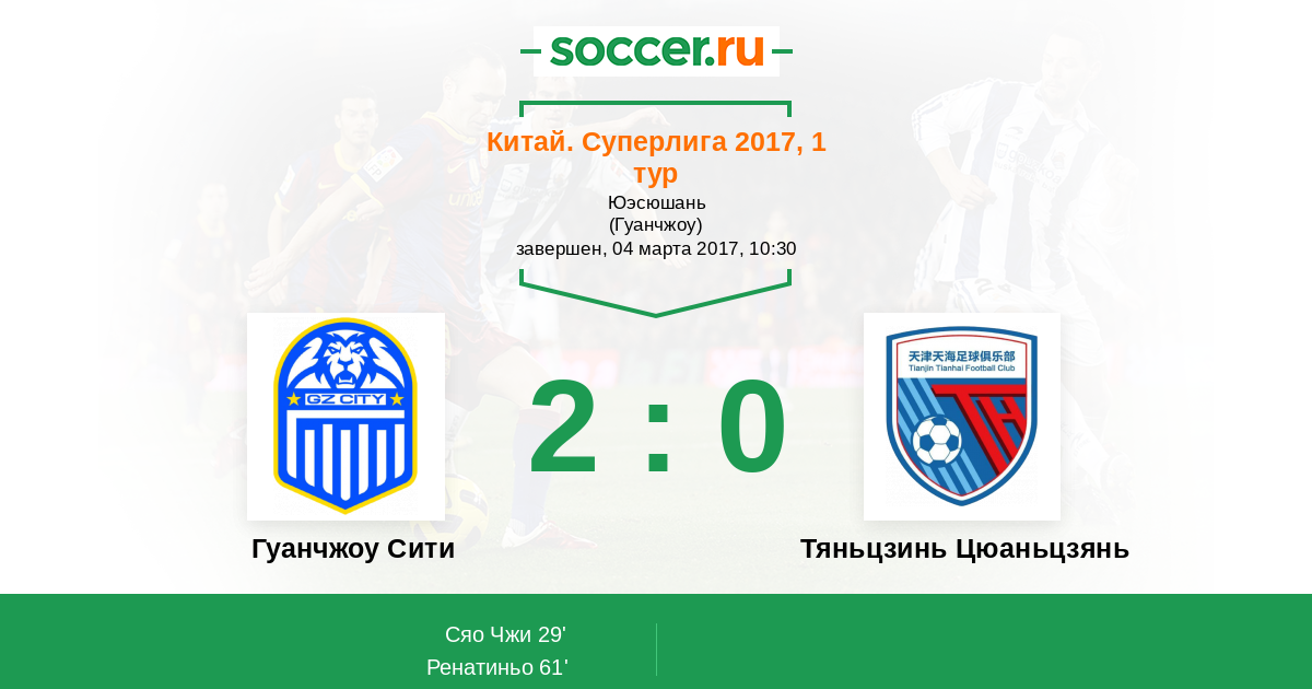 Гуанчжоу Сити - Тяньцзинь Цюаньцзянь: обзор матча 4 марта 2017