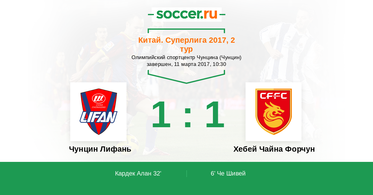 Чунцин Лифань - Хебей Чайна Форчун: обзор матча 11 марта 2017