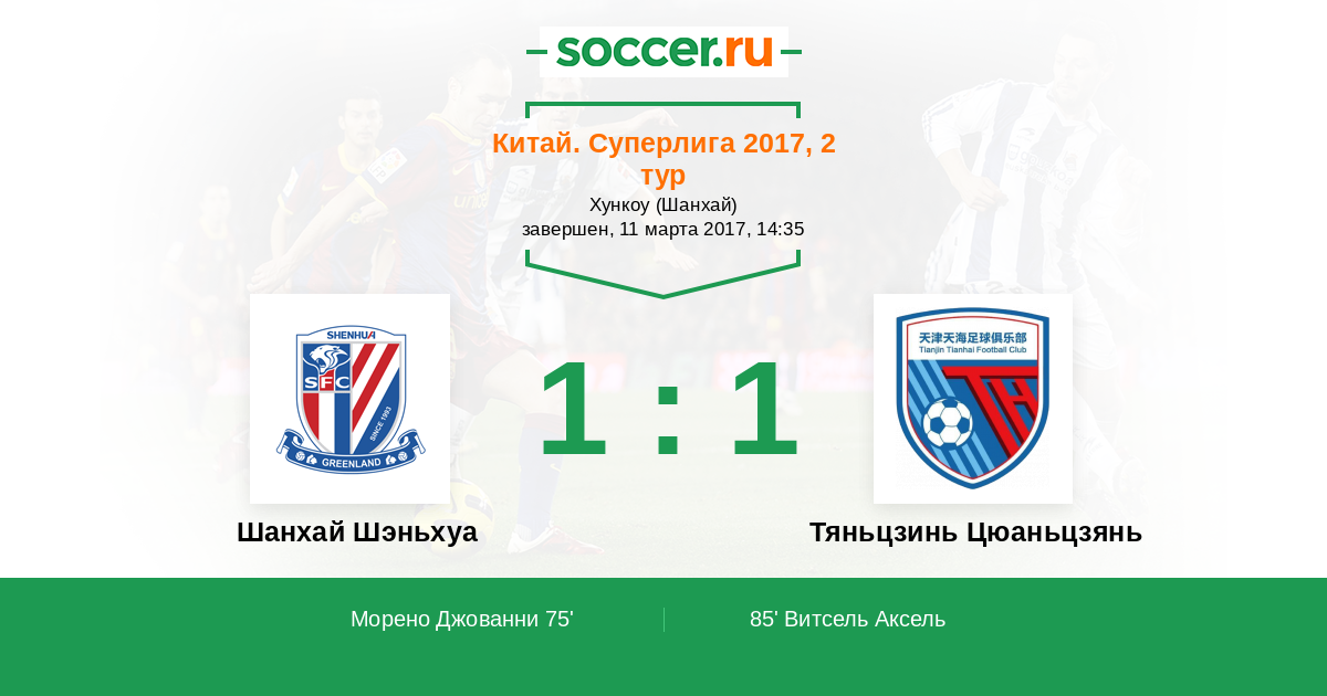 Шанхай Шэньхуа - Тяньцзинь Цюаньцзянь: обзор матча 11 марта 2017