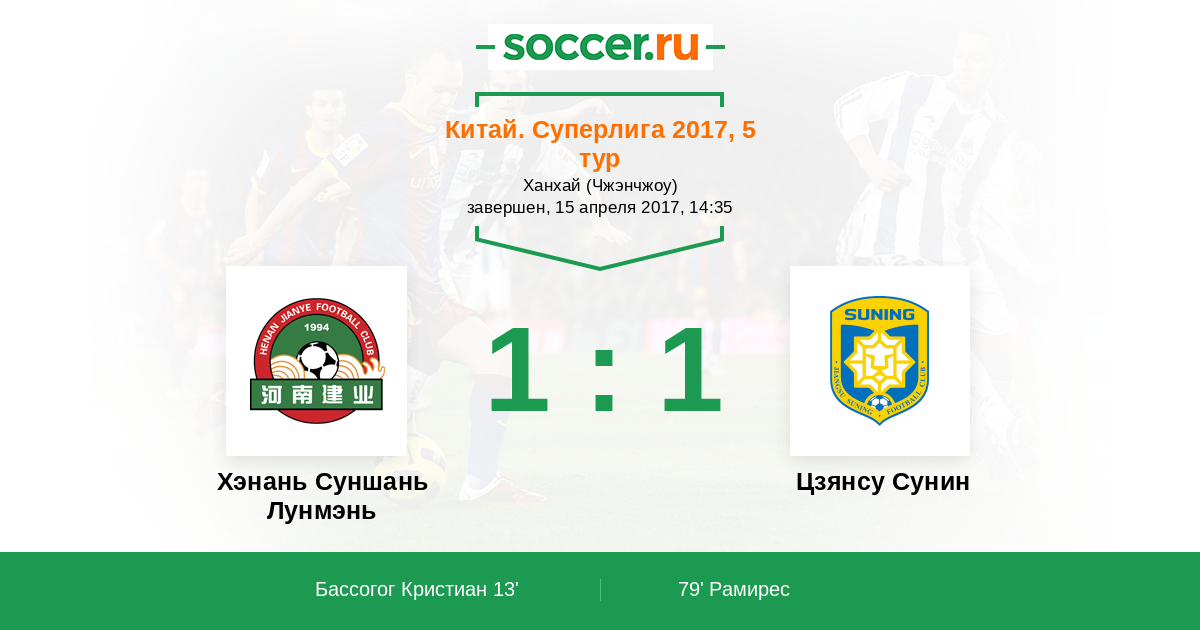 Хэнань Суншань Лунмэнь - Цзянсу Сунин: обзор матча 15 апреля 2017
