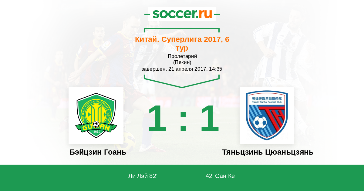 Бэйцзин Гоань - Тяньцзинь Цюаньцзянь: обзор матча 21 апреля 2017