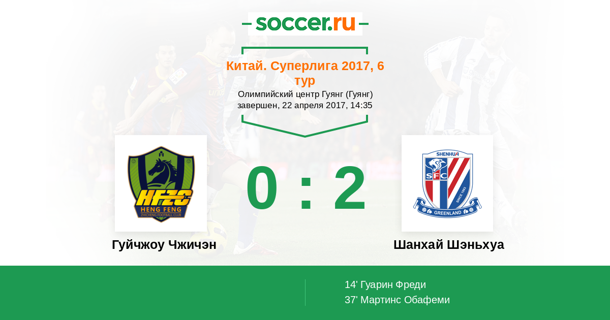 Гуйчжоу Чжичэн - Шанхай Шэньхуа: обзор матча 22 апреля 2017