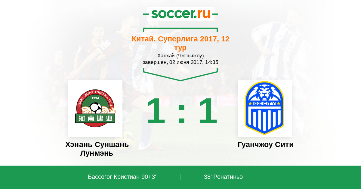 Хэнань Суншань Лунмэнь - Гуанчжоу Сити: обзор матча 2 июня 2017