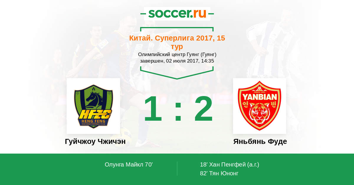 Гуйчжоу Чжичэн - Яньбянь Фуде: обзор матча 2 июля 2017