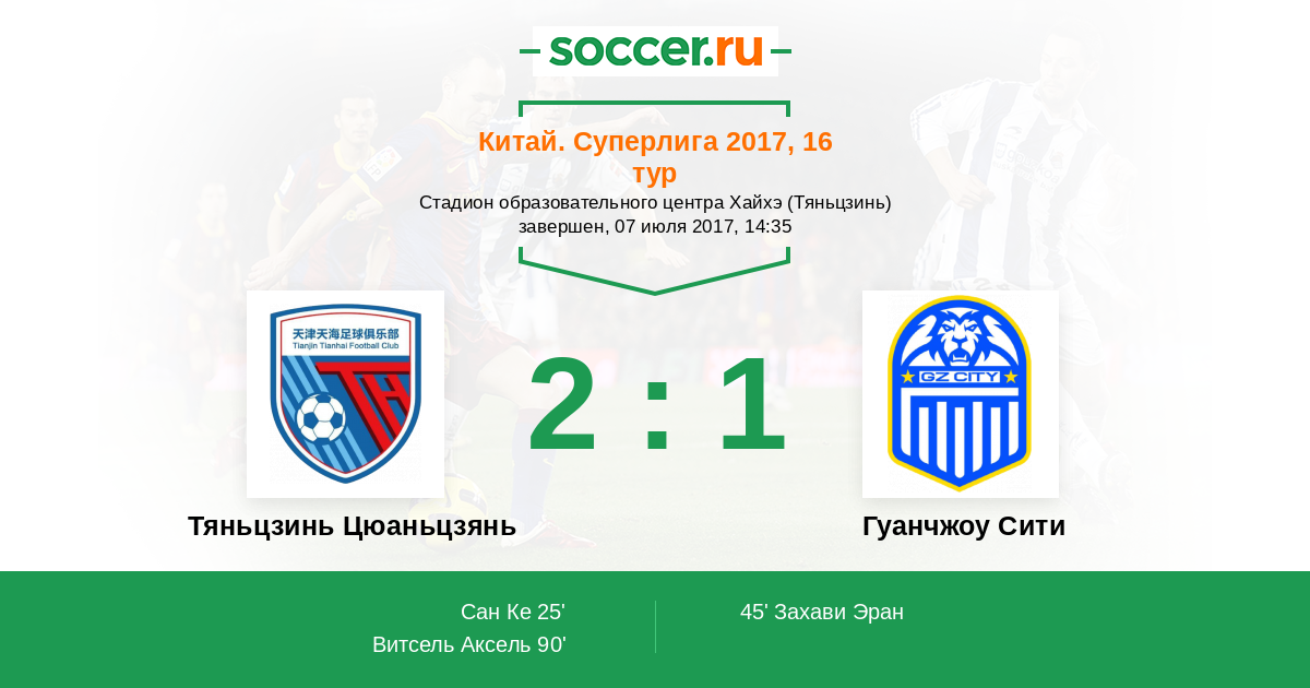 Тяньцзинь Цюаньцзянь - Гуанчжоу Сити: обзор матча 7 июля 2017