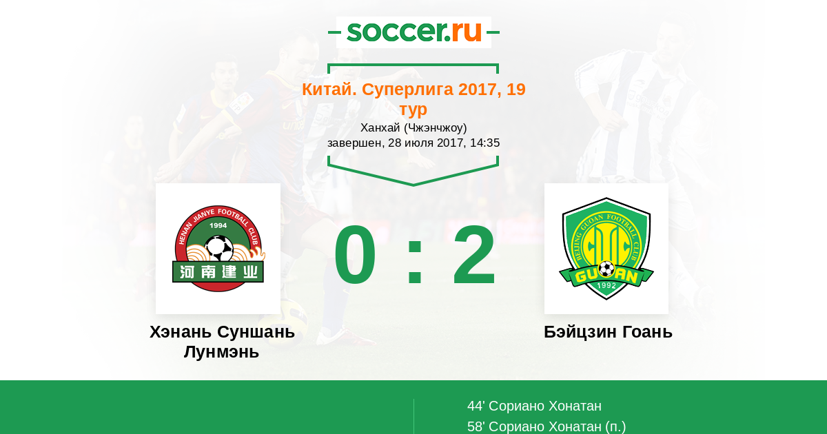 Хэнань Суншань Лунмэнь - Бэйцзин Гоань: обзор матча 28 июля 2017