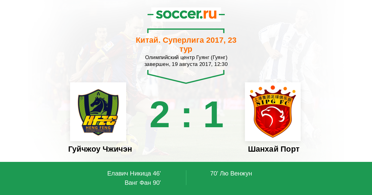 Гуйчжоу Чжичэн - Шанхай Порт: обзор матча 19 августа 2017