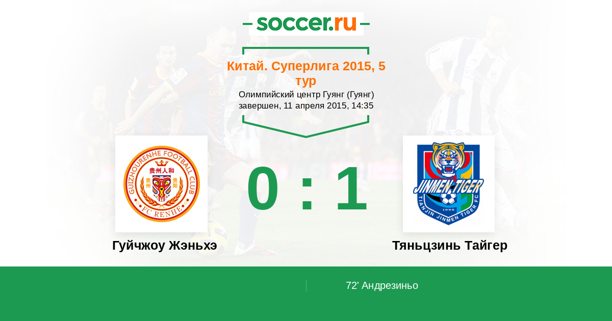 Гуйчжоу Жэньхэ - Тяньцзинь Тайгер: обзор матча 11 апреля 2015