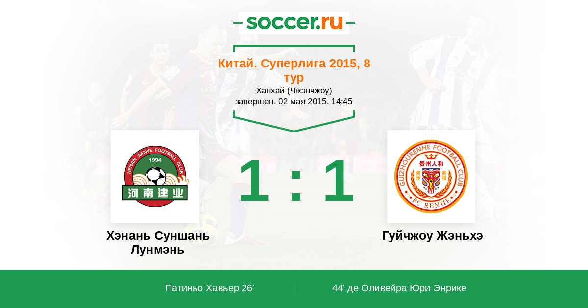 Хэнань Суншань Лунмэнь - Гуйчжоу Жэньхэ: обзор матча 2 мая 2015