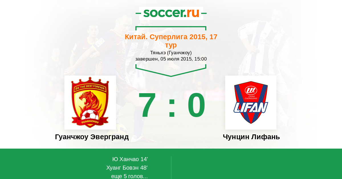 Гуанчжоу Эвергранд - Чунцин Лифань: обзор матча 5 июля 2015