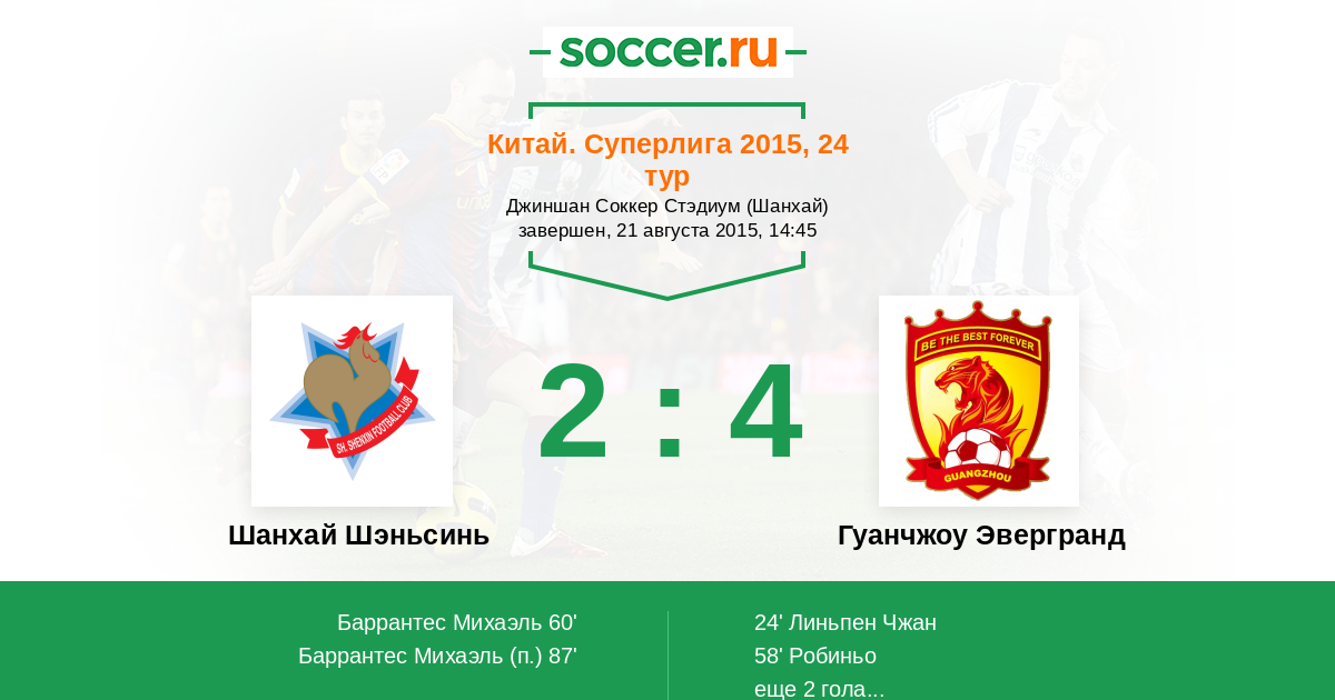 Шанхай Шэньсинь - Гуанчжоу Эвергранд: обзор матча 21 августа 2015