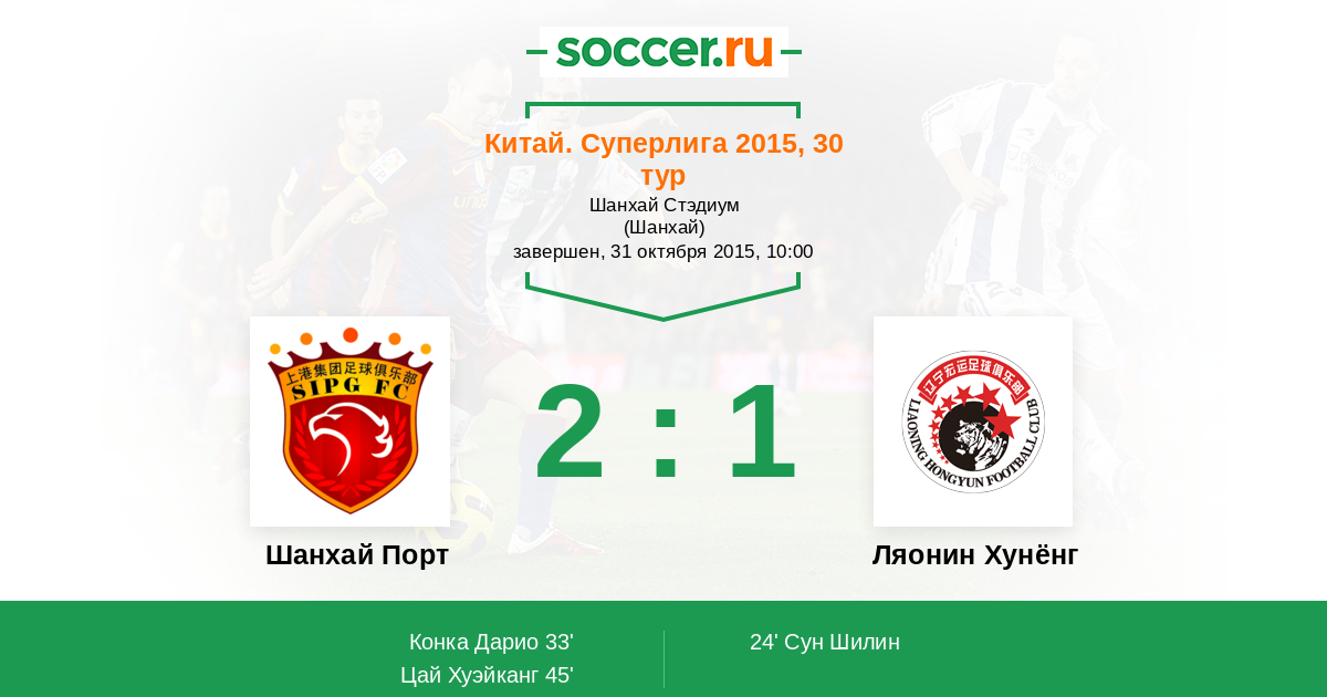 Шанхай Порт - Ляонин Хунёнг: обзор матча 31 октября 2015