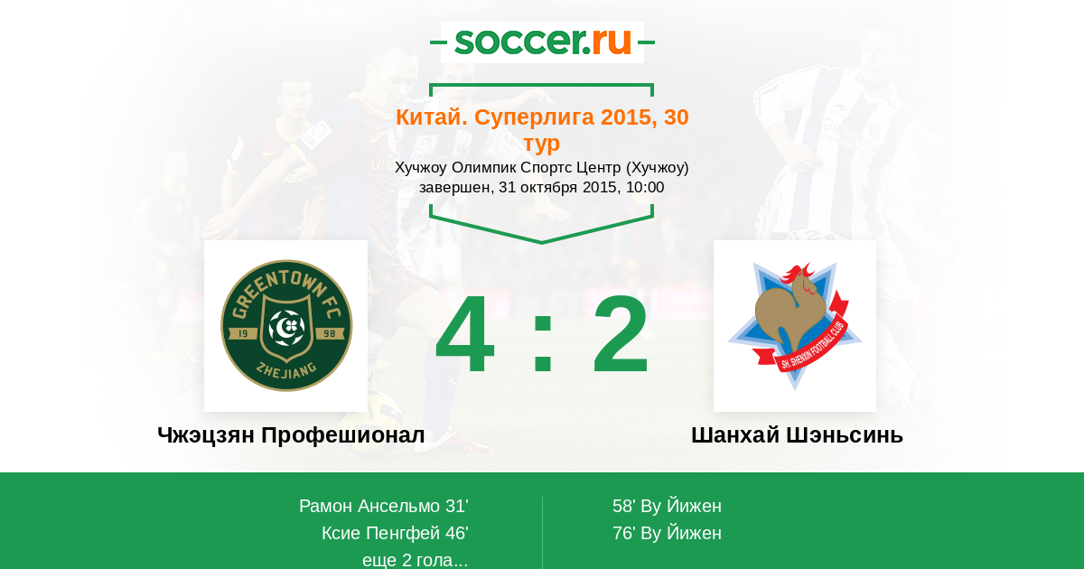 Чжэцзян Профешионал - Шанхай Шэньсинь: обзор матча 31 октября 2015