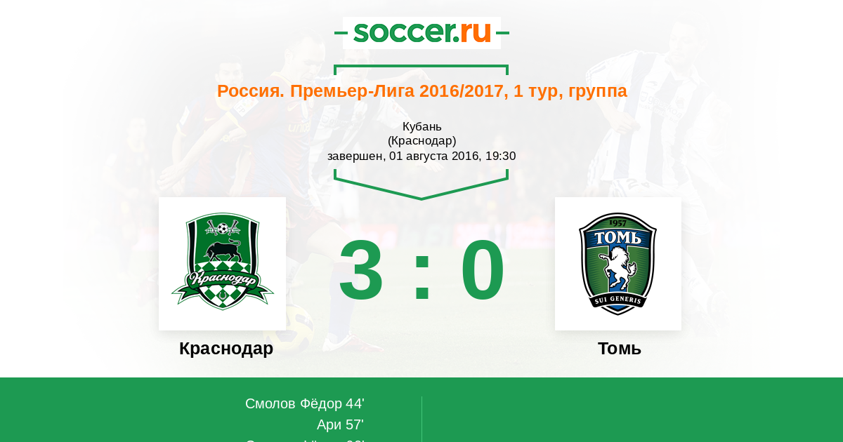 Краснодар - Томь: обзор матча 1 августа 2016