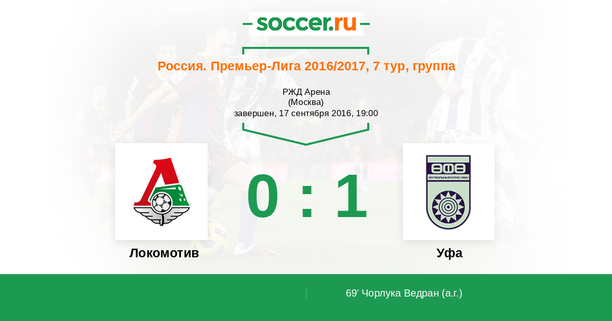 Локомотив - Уфа: обзор матча 17 сентября 2016