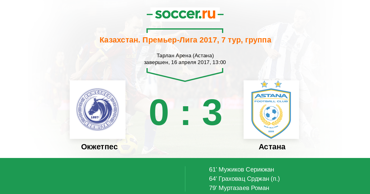 Окжетпес - Астана: обзор матча 16 апреля 2017