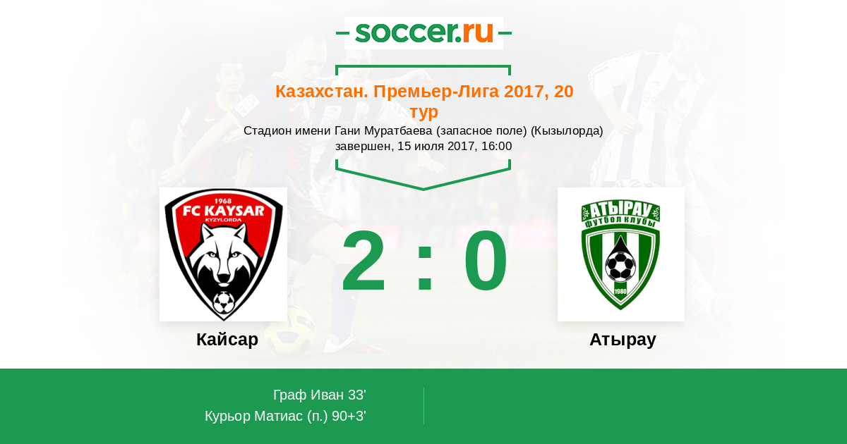 Кайсар - Атырау: обзор матча 15 июля 2017