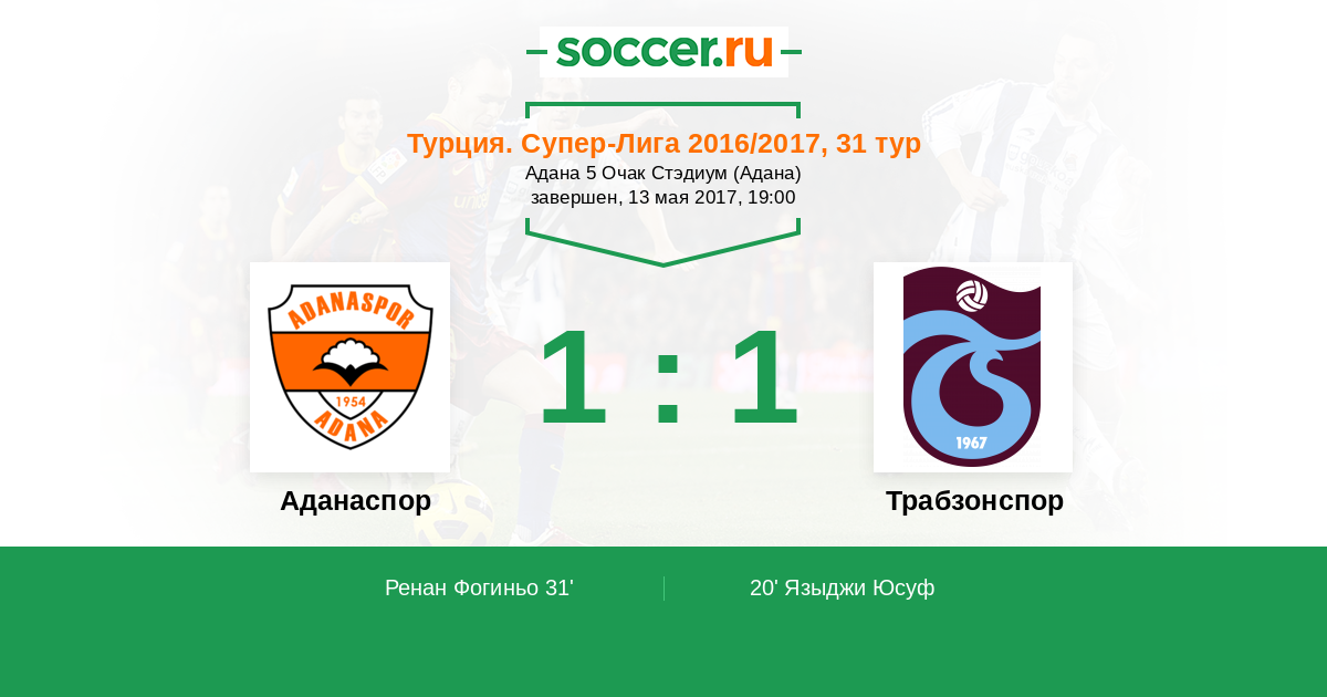 Аданаспор - Трабзонспор: обзор матча 13 мая 2017