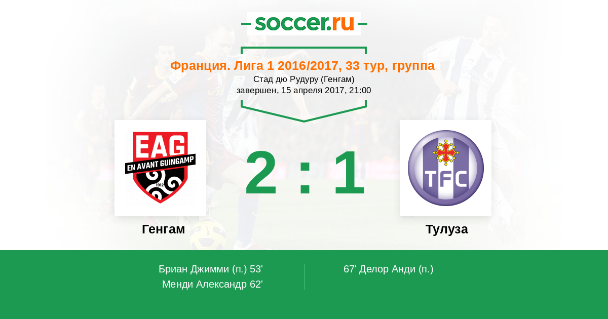 Генгам - Тулуза: обзор матча 15 апреля 2017