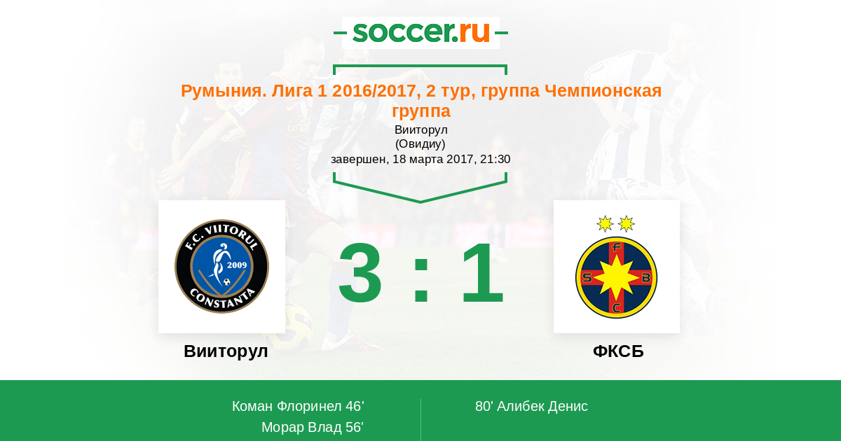 Вииторул - Стяуа: обзор матча 18 марта 2017
