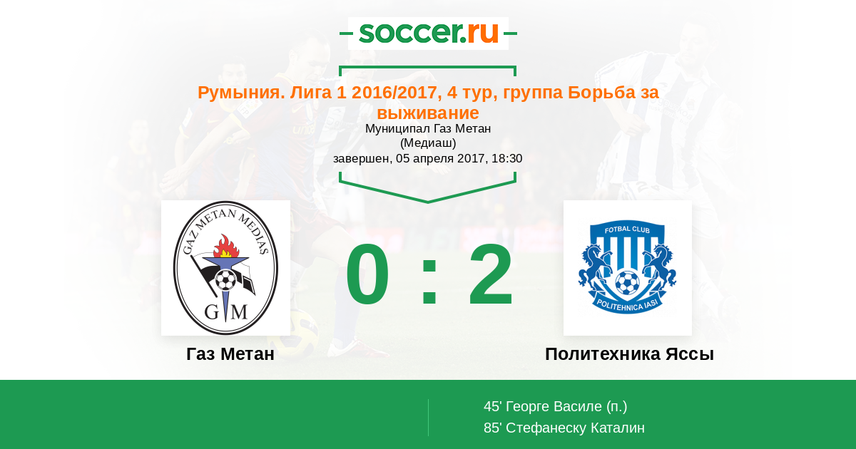 Газ Метан - Политехника Яссы: обзор матча 5 апреля 2017