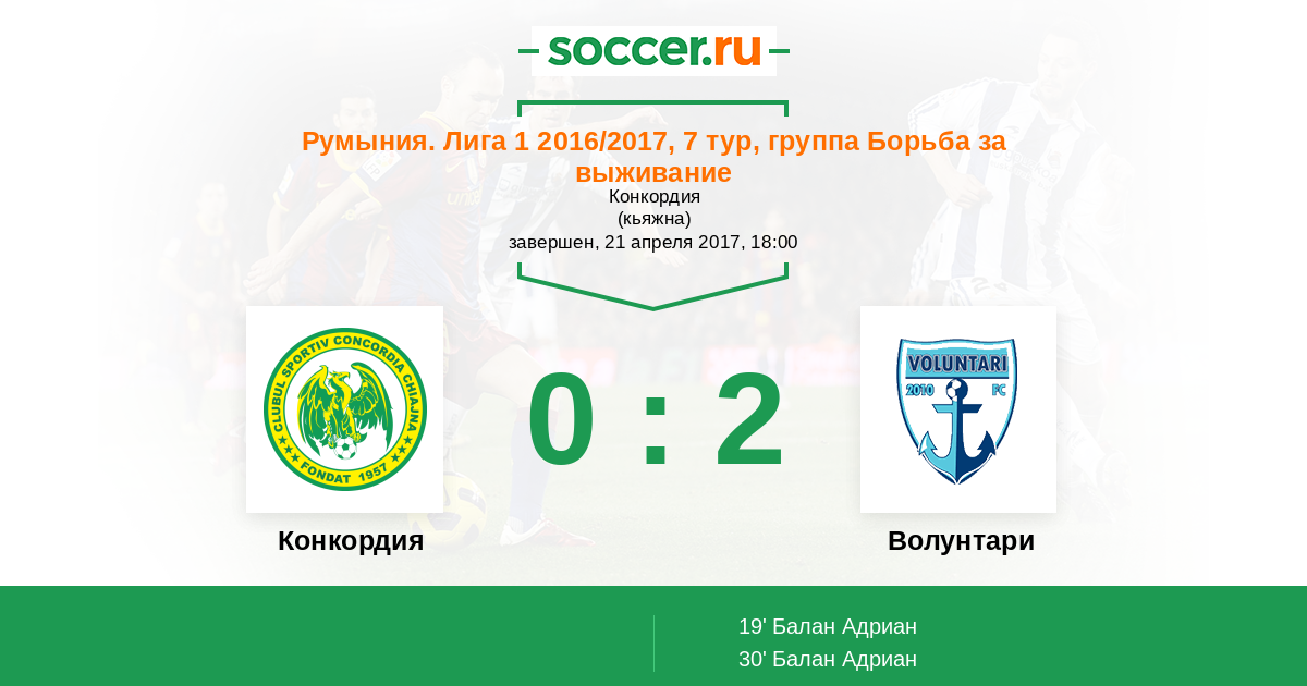 Конкордия - Волунтари: обзор матча 21 апреля 2017