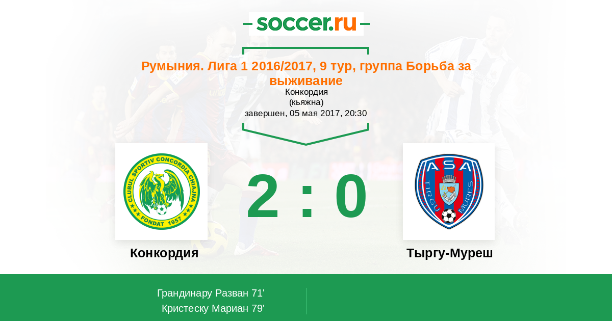 Конкордия - Тыргу-Муреш: обзор матча 5 мая 2017