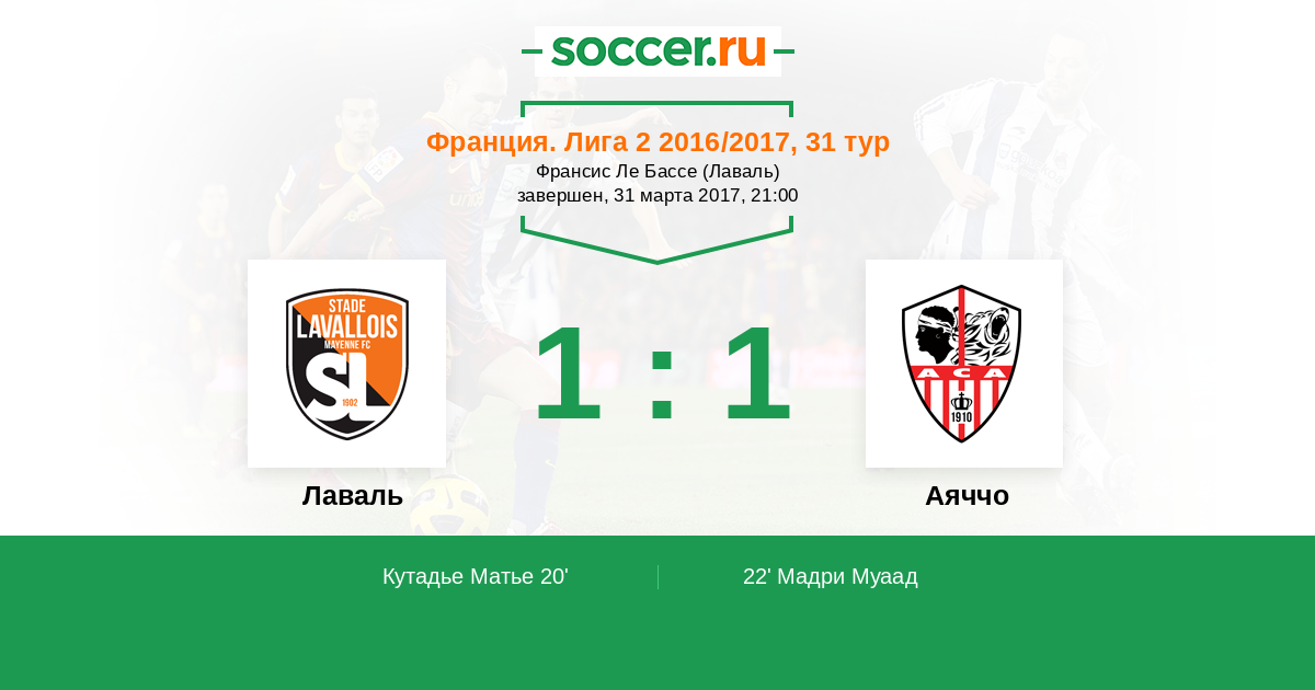 Лаваль - Аяччо: обзор матча 31 марта 2017