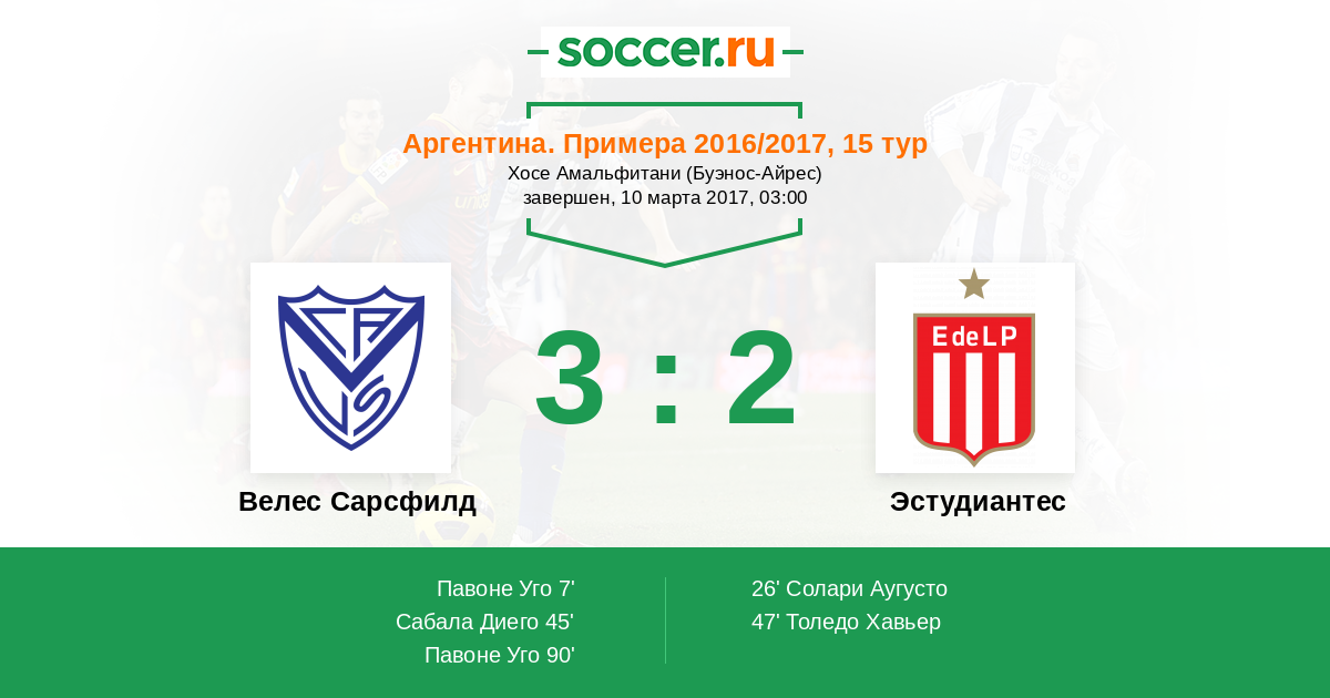 Велес Сарсфилд - Эстудиантес: обзор матча 10 марта 2017