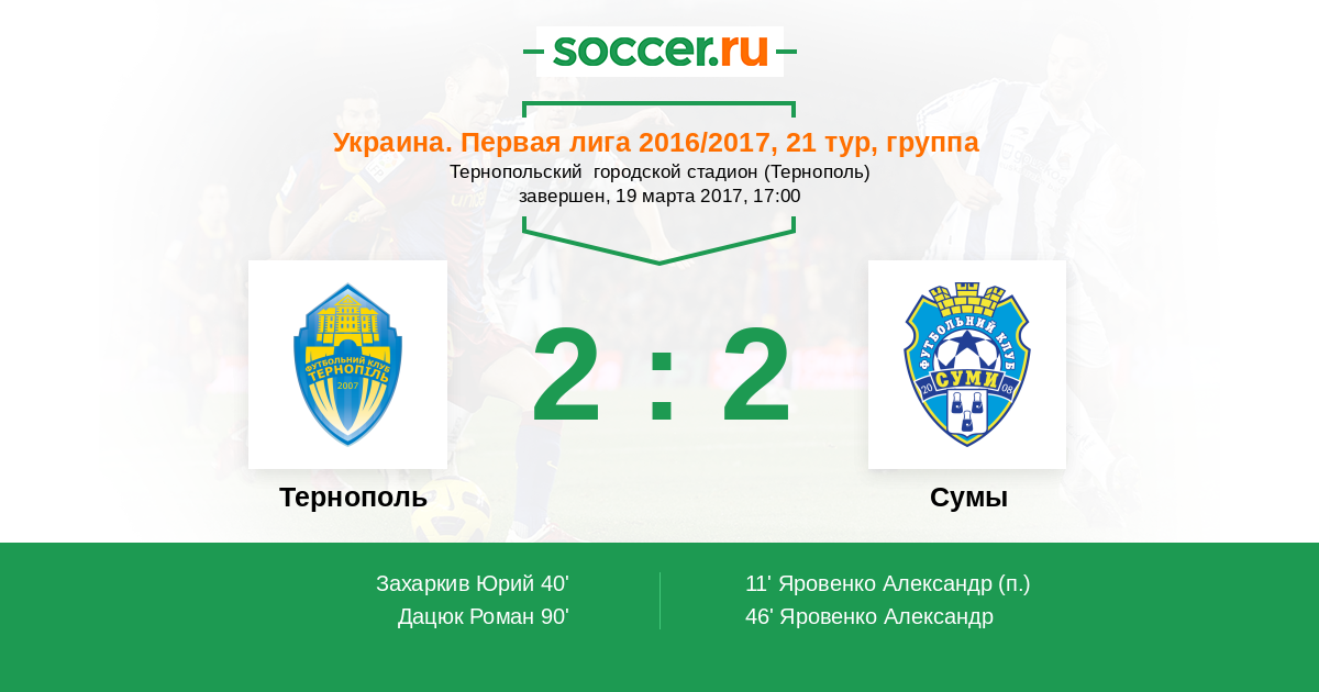 Тернополь - Сумы: обзор матча 19 марта 2017