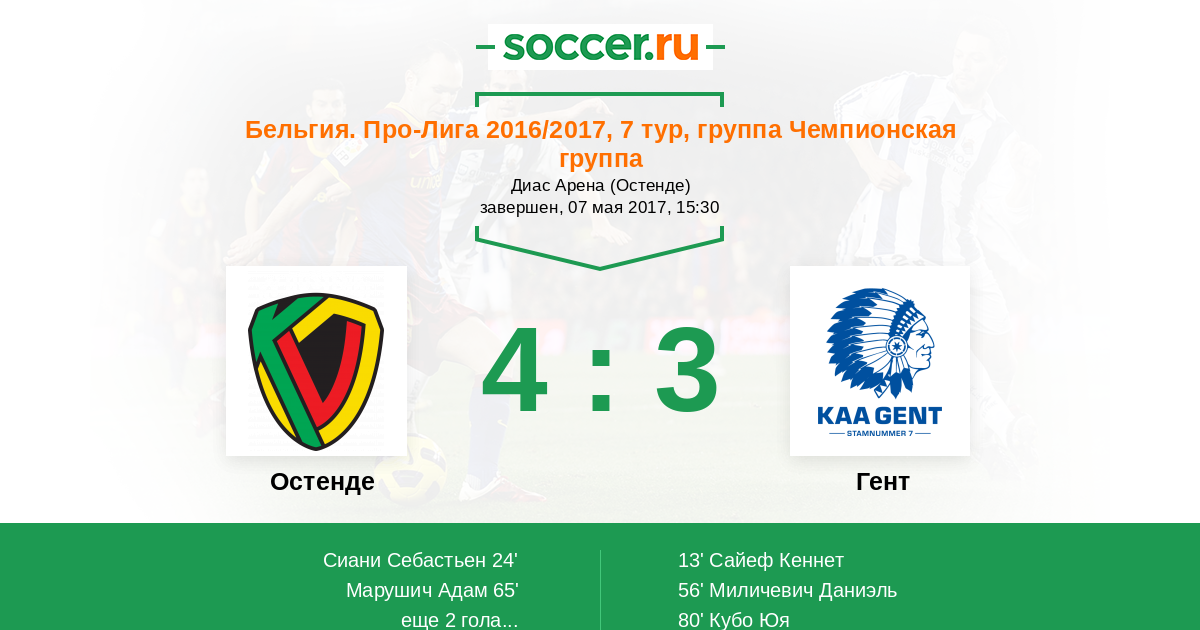 Остенде - Гент: обзор матча 7 мая 2017