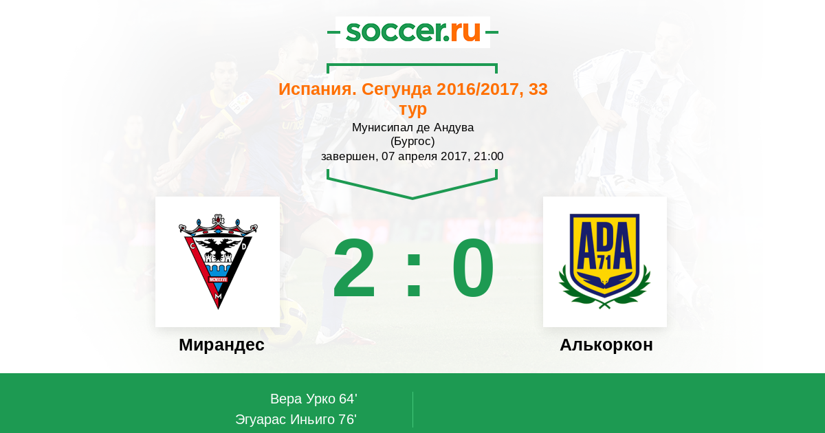 Мирандес - Алькоркон: обзор матча 7 апреля 2017