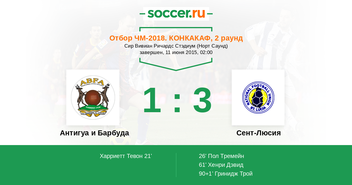 Антигуа и Барбуда - Сент-Люсия: обзор матча 11 июня 2015