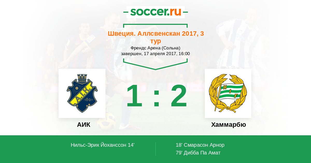 АИК - Хаммарбю: обзор матча 17 апреля 2017