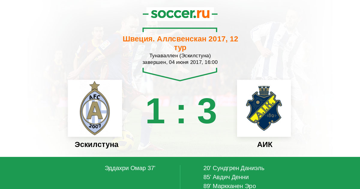 Эскилстуна - АИК: обзор матча 4 июня 2017