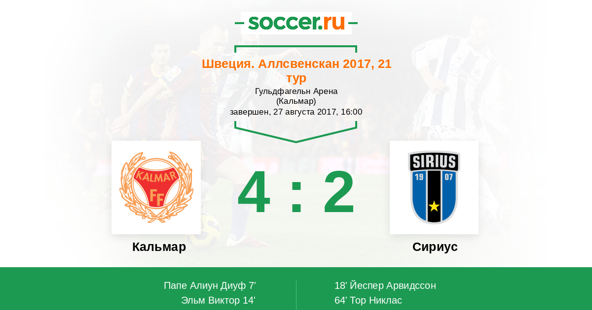 Кальмар - Сириус: обзор матча 27 августа 2017