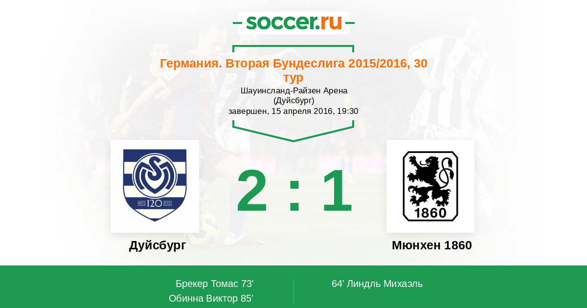 Дуйсбург - Мюнхен 1860: обзор матча 15 апреля 2016
