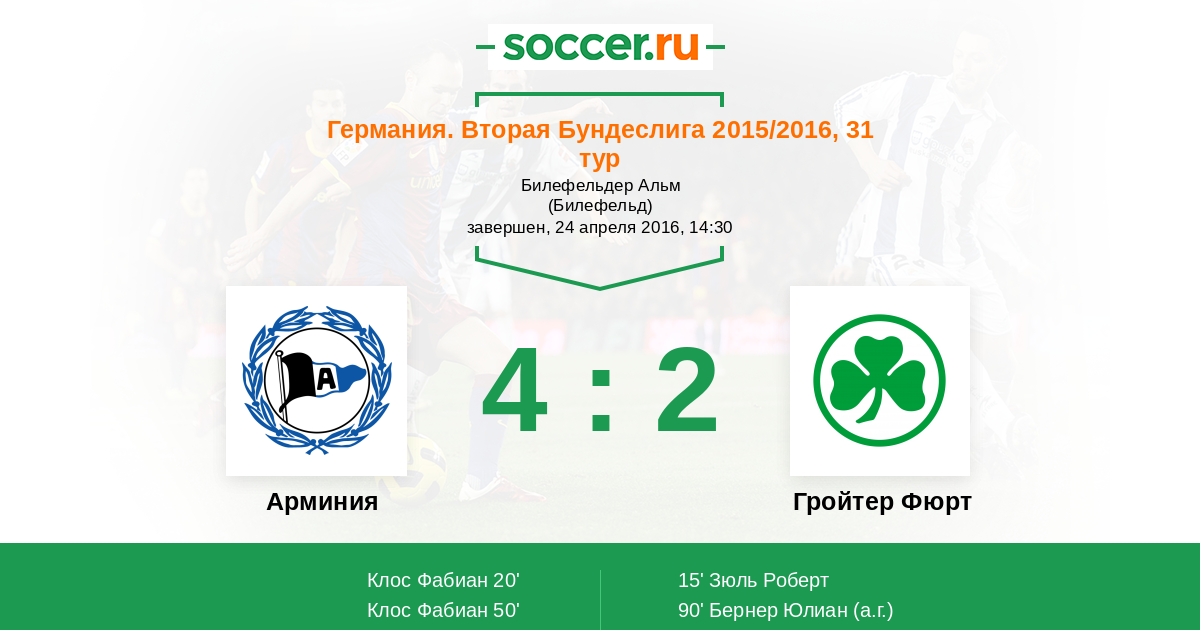 Арминия - Гройтер Фюрт: обзор матча 24 апреля 2016