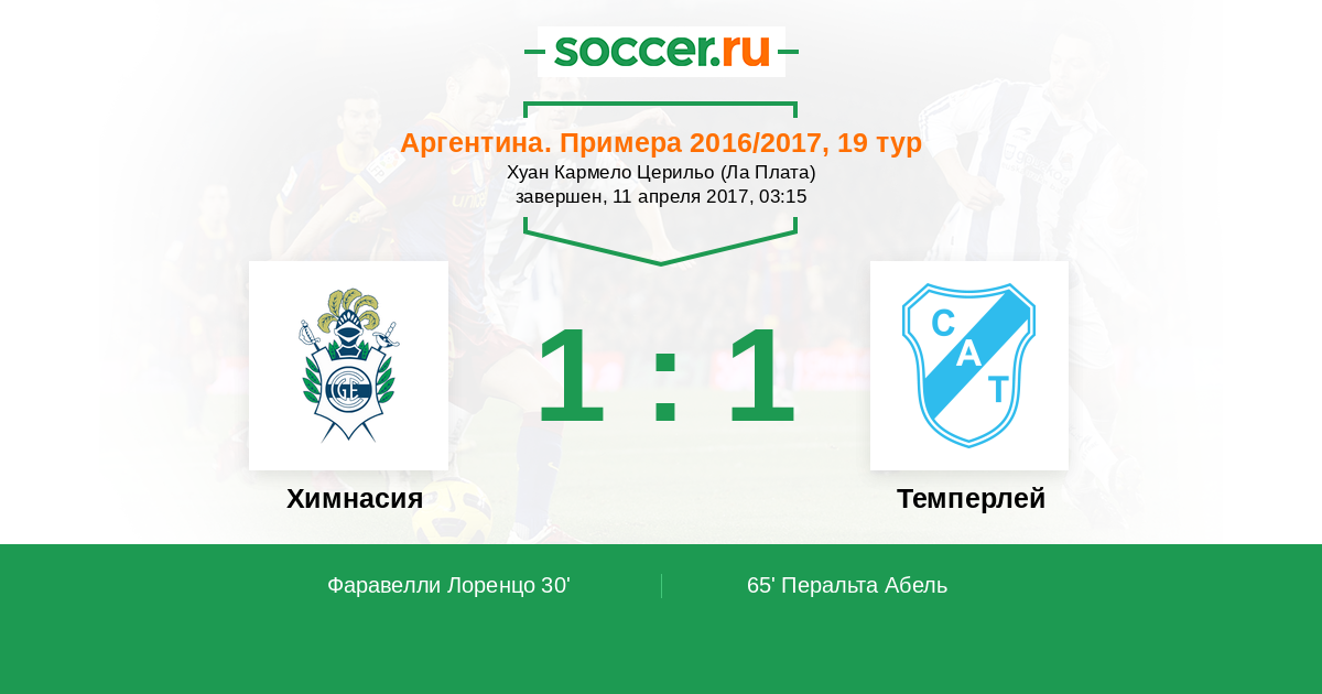 Химнасия - Темперлей: обзор матча 11 апреля 2017