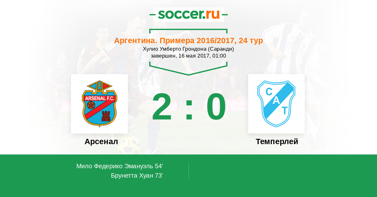 Арсенал - Темперлей: обзор матча 16 мая 2017