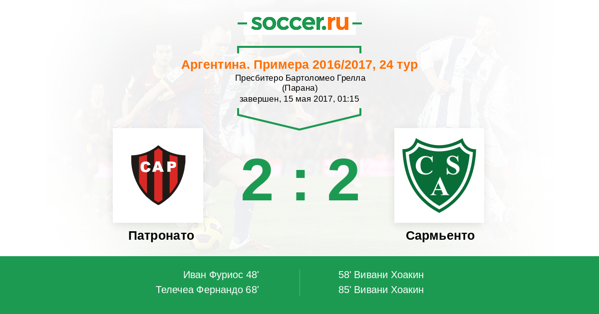 Патронато - Сармьенто: обзор матча 15 мая 2017