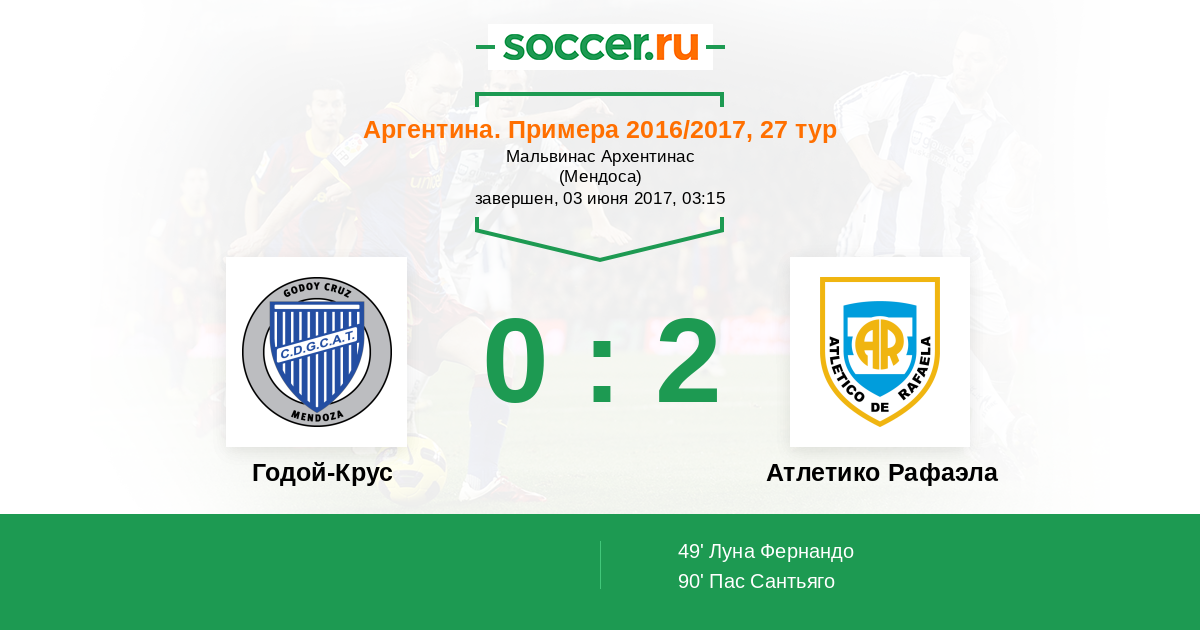 Годой-Крус - Атлетико Рафаэла: обзор матча 3 июня 2017