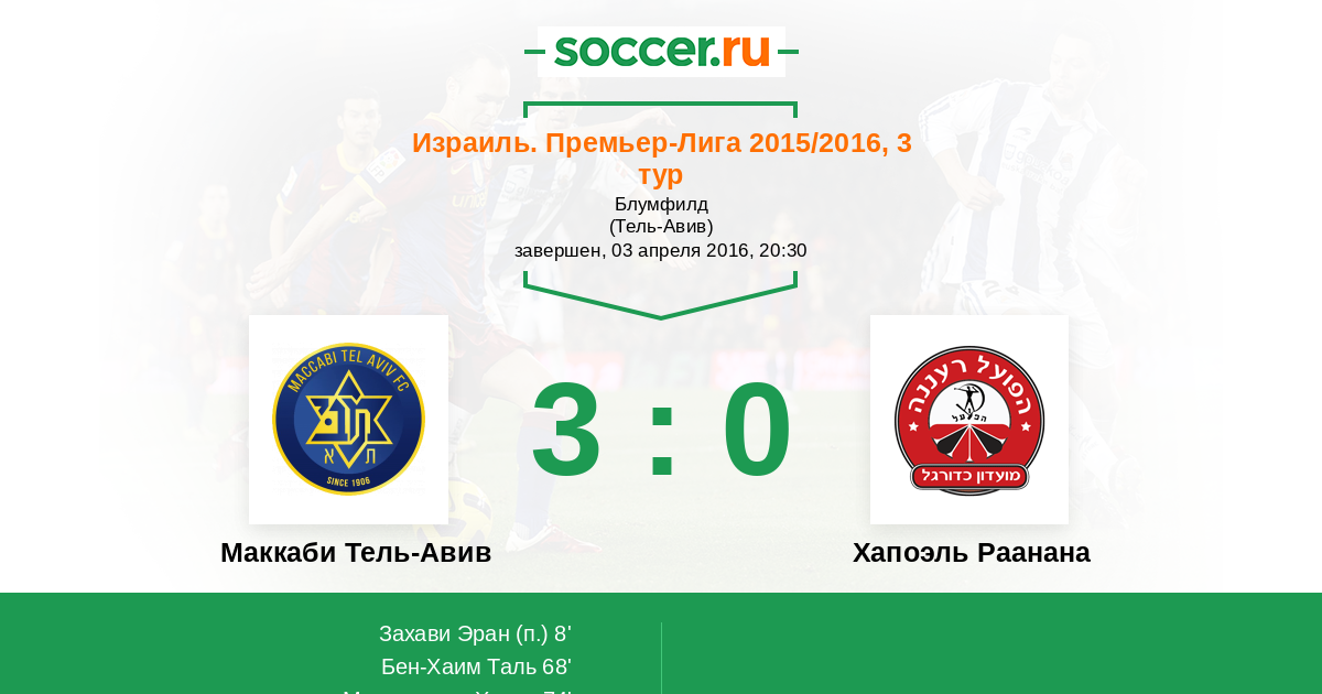 Маккаби Тель-Авив - Хапоэль Раанана: обзор матча 3 апреля 2016