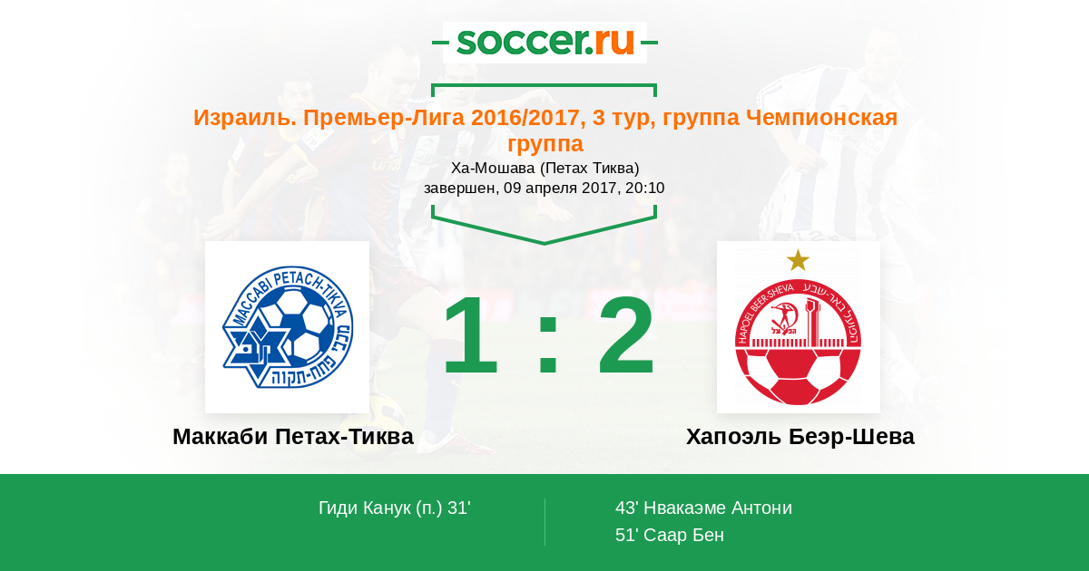 Маккаби Петах-Тиква - Хапоэль Беэр-Шева: обзор матча 9 апреля 2017