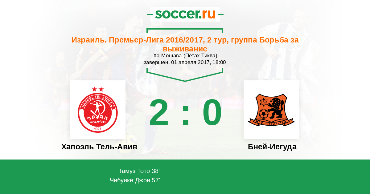 Хапоэль Тель-Авив - Бней-Иегуда: обзор матча 1 апреля 2017