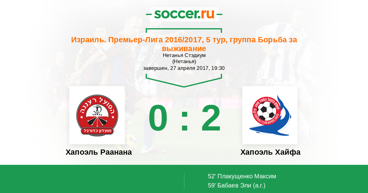 Хапоэль Раанана - Хапоэль Хайфа: обзор матча 27 апреля 2017