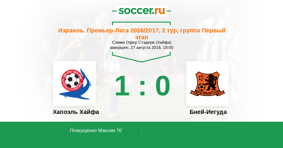 Хапоэль Хайфа - Бней-Иегуда: обзор матча 27 августа 2016