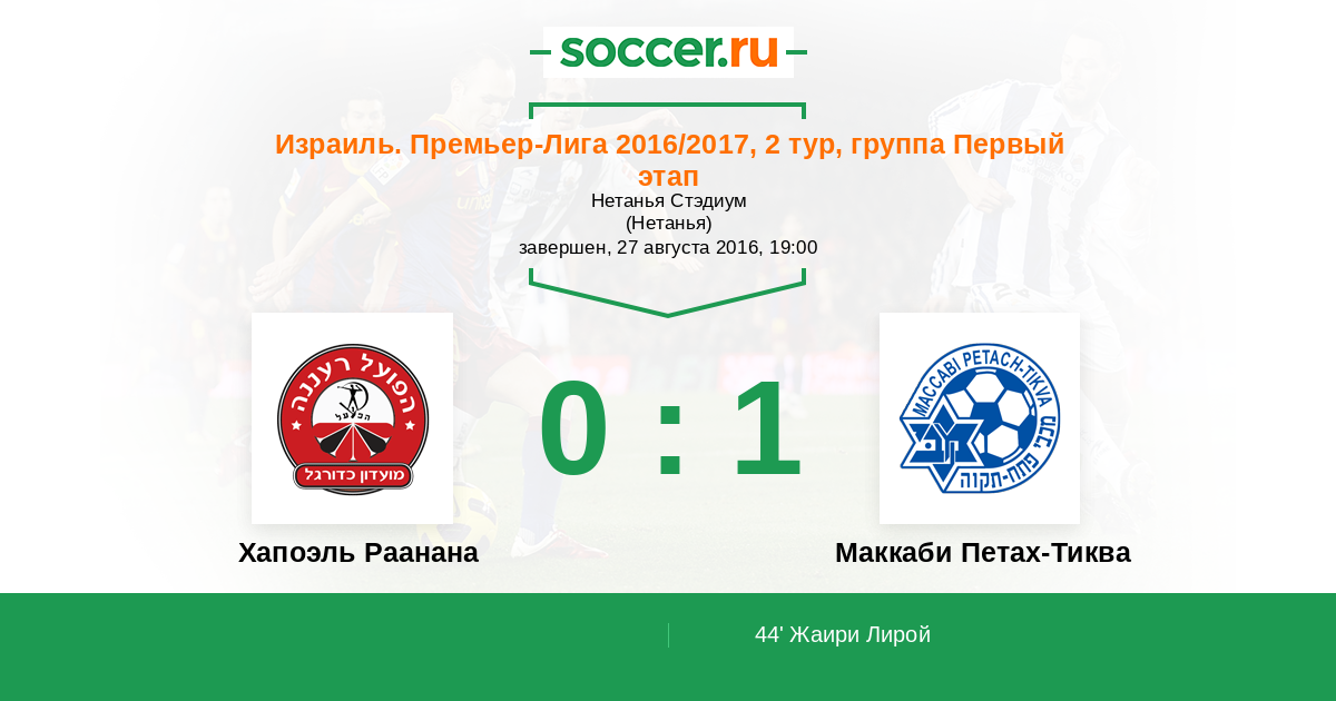 Хапоэль Раанана - Маккаби Петах-Тиква: обзор матча 27 августа 2016