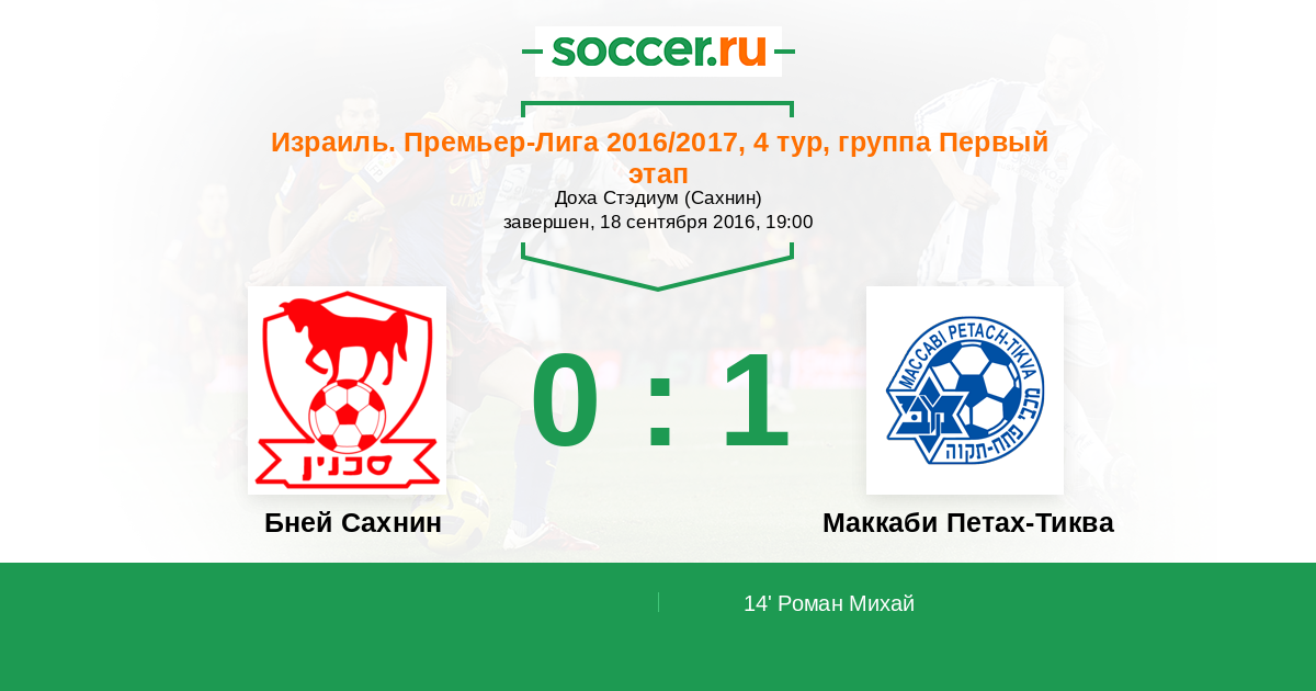 Бней Сахнин - Маккаби Петах-Тиква: обзор матча 18 сентября 2016